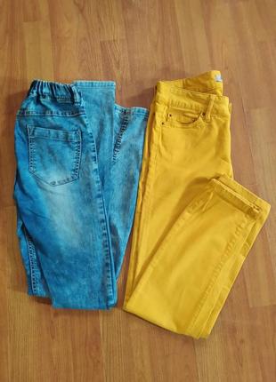 Стан гарний, жовті пот 32 поб 40 довжина 87, стрейчеві і м'якенькі, дуже приємні. сині пот 32 на резинці поб 37 довжина 95, стрейчеві висока посадка.