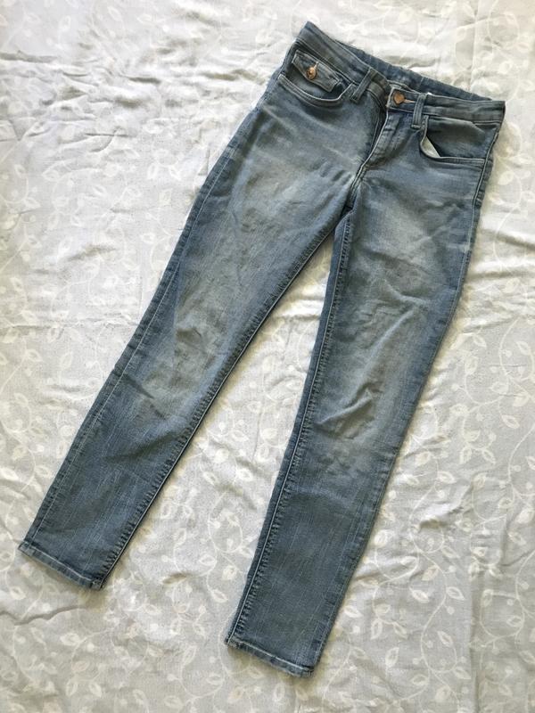 Джинси в чудовому стані на кнопочці з затертостями Тканина дуже м'яка і приємна на дотик Бавовна - 80 , Поліестр -19 , Еластан - 1 Для зросту 134-135 (8-9 років) Талія - 31 см Посасадка спереду - 19 см Посадка ззаду - 28 см По стегнах - 40 см ( прибл) Шир штанини зверху - 22,5 см Штанина знизу - 13,5 см Внутр шов - 66 см Зовнішній шов - 83 см
