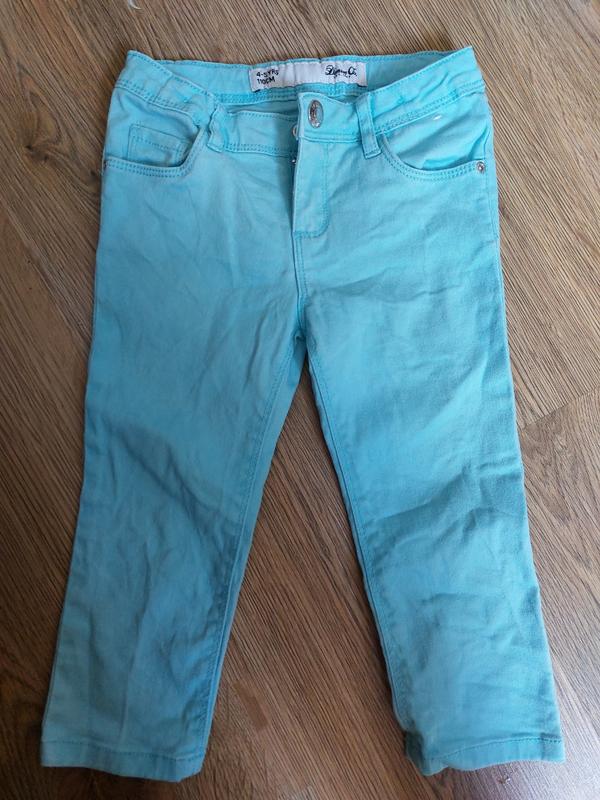 штанишки на девочку на 4-5 лет, но 110 см, цвет голубой, тянутся, состояние идеально