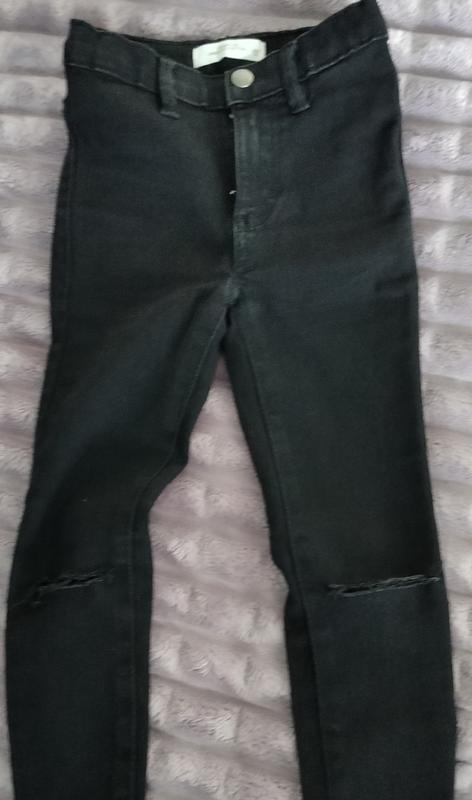Джинси на худеньку дівчинку. Одягали 2 рази. На колінах розрізи.
