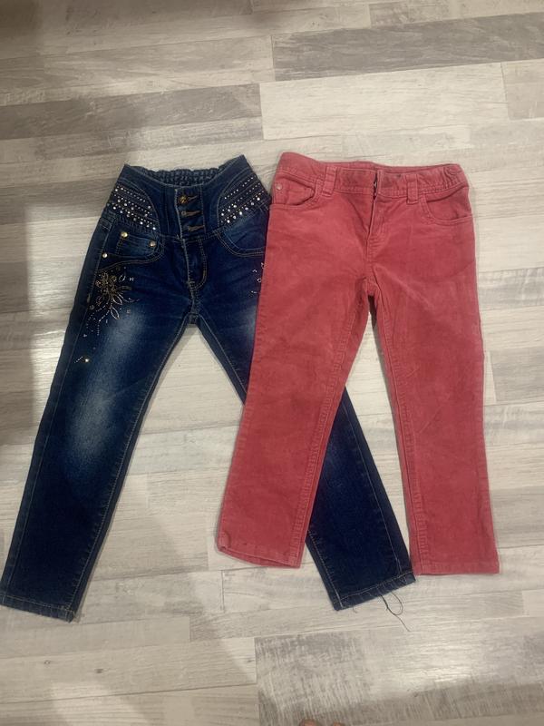 Джинсы розовые вельветовые состояние хорошая пол обхват талии 28 см есть у тяжко тянется до 31 см по боковому Шиву длина 57 см шаговый шов 40 см по Ирочки указано 3 4 года на рост 104 см если очень очень хорошо присмотреться то на коленках можно увидеть небольшое тёмное пятнышко цена 250грн. Синие джинсы без этикетки тоже тянутся пол обхват талии 23 см тянется до 30 длина по внешнему Шиву 64 см длина по внутреннему Шиву 44 см цена 200 грн следов ношения практически нет на фото попыталась передать следы ношение это единственная на карманах если прям хорошо присмотреться видно небольшие потертости но опять же при носки их не видно