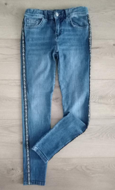 Джинси з стрічкою на штанках. Вузькі. Мають утяжку, що дуже зручно. Не цупкі, більше на весну - літо. Добре тягнуться. Бренд - HERE & THERE Ріст вказано - 152 см, але раджу орієнтуватися на заміри: ПОТ - 30 ПОБ - 38 Довжина - 83 /66 Посадка - 20 / 28 Стан - відмінний
