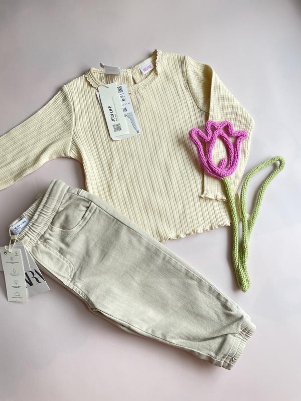 Молочні джинсики карго в розмірі 92, красивий ніжний лонгслів.