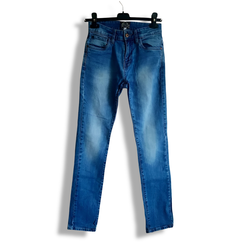 Без дефектов. Почти новые. Высокое качество одежды американской марки C&A знают, наверное, все. Ткань, пошив, фурнитура - все отлично. Реальный цвет - чуть светлее, мягче, чем на фото, не так насыщенный синий. Длина по внутреннему шву= 76 см. Высота (глубина) посадки по переду= 24 см. Напівохват в стегнах= 45 см. Полуохват в талии= 33 см. Как видите на фото, в поясе есть внутренняя лента-резинка, позволяющая корректировать пояс по талии.