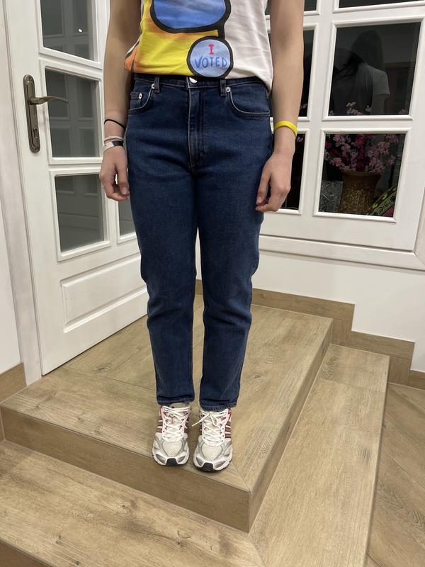 Фото джинсів зроблено на дівчинці ростом 158 см. Якщо не враховувати невеличку протертість на 3-му фото то в цілому джинси в ідеальному стані Джинсова тканина щільна трішечки тягнеться