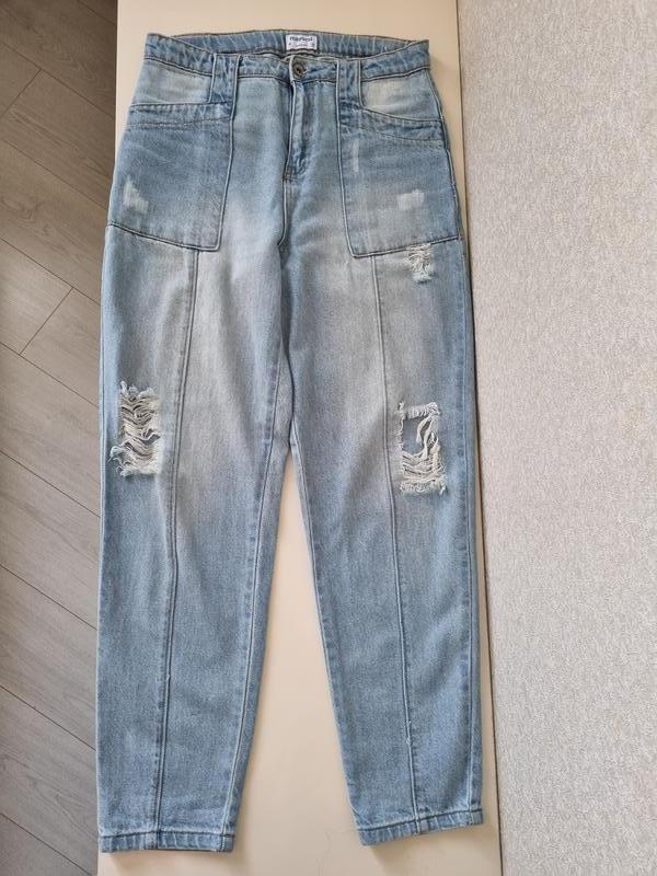 Круті блакитні джинси з м´якого коттону Mayoral на зріст 162 см, вік 14-16 років: ПОТ 36 см, ПОС 45 см, висота посадки 29 см, ширина штаньки вгорі ПО 29 см, довжина по боку 92 см, кроковий 66 см Посадка висока як мом-си, стильні потертості, ззаду кишені-клапани Дуже приємна тканина Стан чудовий, без дефектів