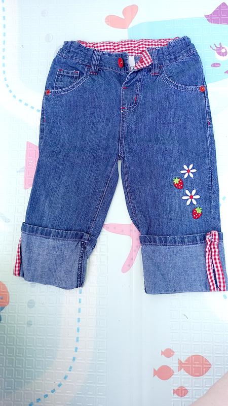 Джинси для дівчинки з вишивкою ●Розмір 2-3 роки ●Тканина: Джинс коттон ●Ціна 150 грн Джинси мають бічні кишені. Застібається на ґудзик. В низу підкочені, можно відкотити