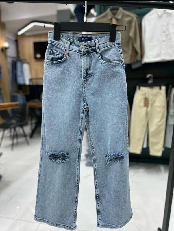 Стильные джинсы палаццо для красавиц 💗 дирки скользящие в поясе есть утяжка производитель Турция Замеры: длина/шак/ пояс 11 (146) - 92/63/31 14 (164) - 102/72/32 Ян