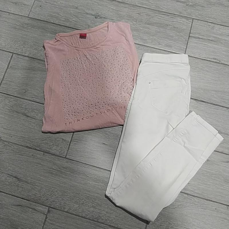 Білі джинси , та вільна бавовняна кофтинка. Довжина 86 см пот 34см поб 40 см , стрейч, до 50см Середня посадка