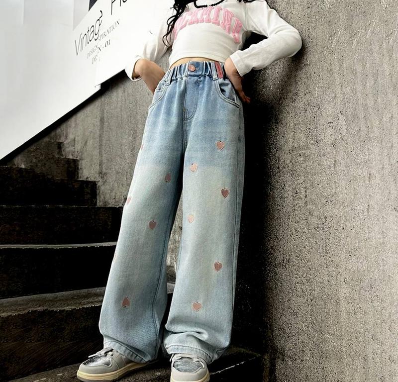 НОВИНКИ❤️❤️❤️❤️❤️❤️❤️❤️ 🦄Новинка,джинси палаццо для дівчат .Ніжно голубий колір ,сердечка вишивка , в поясі добре тягнуться. Якість шикарна , дівчинка буде в захваті . 🦄Розміри: 130(4 шт) 140(5 шт) 150(5 шт) 160(5 шт) 170(5 шт) 🦄Заміри: 130:Довжина 75,крок 50,пояс 24 см. 140:Довжина 80,крок 53,пояс 25 см. 150:Довжина 84,крок 57,пояс 25 см. 160:Довжина 90,крок 61,пояс 26 см. 170:Довжина 94,крок 64,пояс 27 см. Орієнтація на заміри,допускається похибка в 1-2 см. Ціна:699 грн🦄