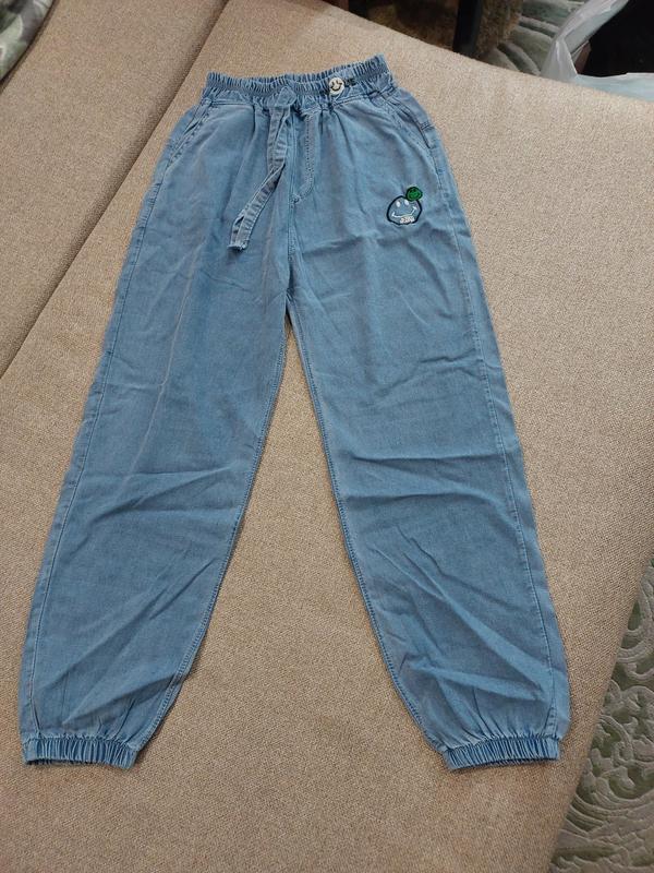 Нові джогери з легкого деніму, майже невідчутні на тілі. На 9-10 років. Довжина -81 см ПОТ-23 см(дуже добре тягнеться) ПОБ-45см