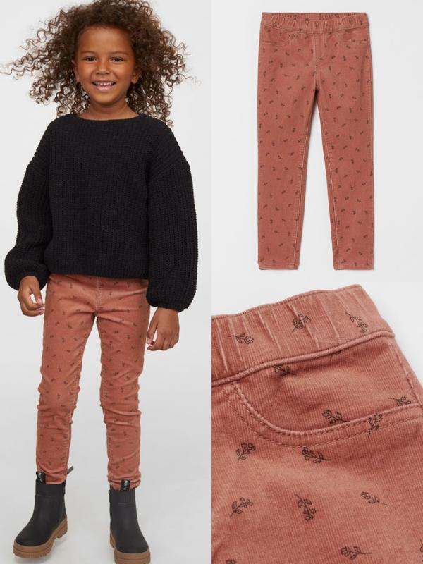 Нові, фірмові, трикотажні трегинси / джинси з еластичного бавовняного вельвету з еластичною резинкою на талії. Передні кишені накладні. . Заміри в спокійному стані: 104см (3-4р) 👉 Резиночка -25см, ПОБ- 28.5см, крок- 41.5см, довжина - 59.5см. ❤️Тканина: 95% бавовна