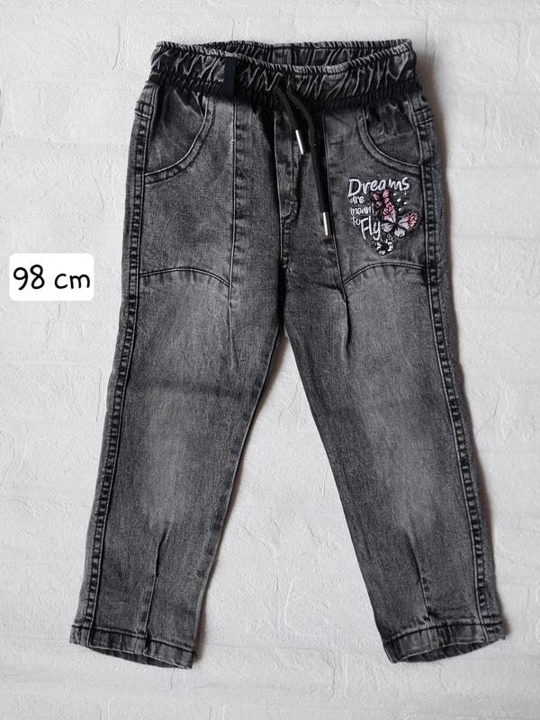 📌Джинси на дівчинку. Дуже гарної якості. Виробництво Туреччини. Мають кишені. Пояс на резинці + активна шнурівка. Добре тримаються на поясі не спадають. 📐 Заміри довжина 54 см пояс 23 крок 35 см 🏷Стан ідеальний. Без дефектів.