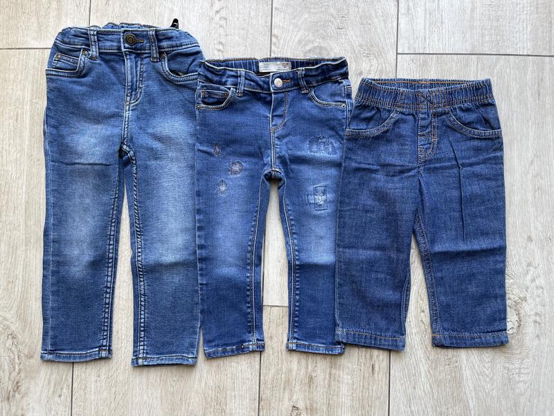 Стан нових, заміри праворуч ліворуч 1.Carters, 8 міс, легкий джинс, довжина 41 см, у поясі 20-26 см, крок 24 см, ціна 145 грн 2. Zara, 86 см, щільний джинс, довжина 46 см, у поясі 23 см ( є регулятор.гумки), крок 29 см, ціна 145 грн 3. Carters Skinny, 3t. Щільний м'який джинс, довжина 52 см, у поясі 28 (є регулятор.гумка) крок 34, ціна 200 грн