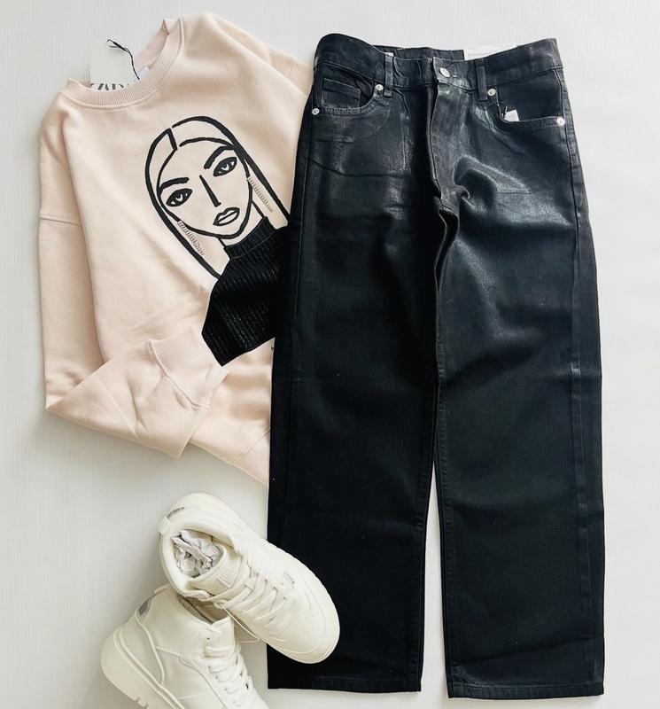 чорні джинси прямі з ефектом блиску 10 років Zara