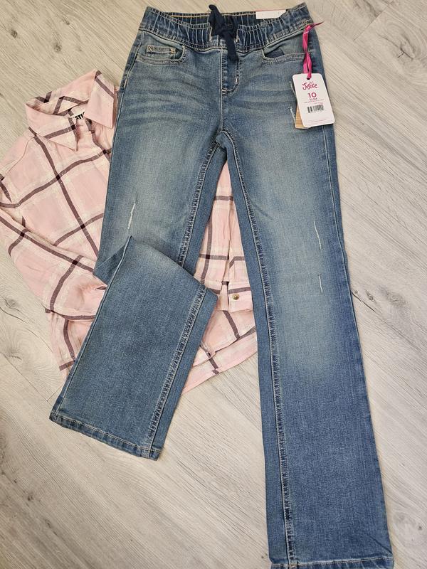 Стильные джинсы клеш на девочку 9-11 лет Материал : коттон (гарно тянутся) Новые с бирками ПОТалии 30 см Высота посадки 20 см Длина 88 см Длина по внутреннему шву 67 см
