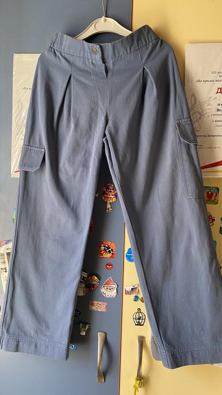 Картонові брюки карго синього кольору (джинс), розмір 140 Стан хороший, є дефект на 3-му фото. Під час носки не видно. Гарна якість, дуже зручні