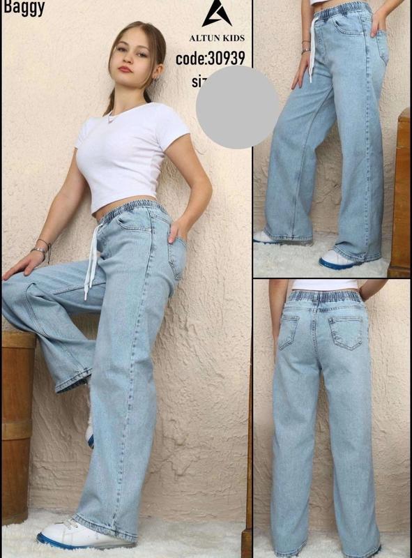 Стильні джинси для красунь 💗 Тканина джинс весна літо, є кишені пояс резинка + робочий шнурок Виробник Туреччина КОЛІР СВІТЛО БЛАКИТНИЙ Заміри: довжина/крок/пояс/бедра 9 (134) - 83/57/25 10 (140) - 86/59/26 11 (146) - 89/62/27 13 (158) - 97/67/29 14 (164) - 101/71/29 15 (170) - 103/73/29 Ян