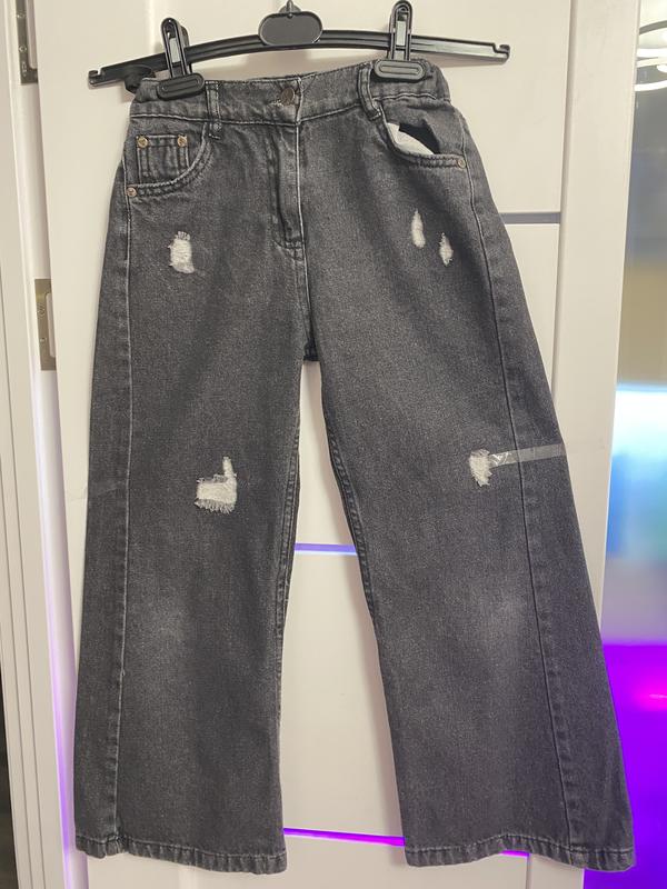 Джинси CEMIX дівочі сірого кольору, кльош.; Заміри:талія на регульованій резинці в спокою-60см, тягнеться до 66; довжина- 82; бедра-92;