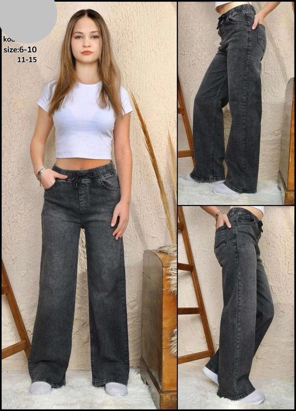 🎀 НОВИНКА 🎀 Джинси палацо для красунь 💗 Пояс широка резинка + робочий шнурок, є кишені Тканина джинс, трішки еластичний Заміри: довжина/крок/пояс/бедра 11 (146) - 90/62/28/43 12 (152) - 92/65/28/44 13 (158) - 96/67/30/45 14 (164) - 99/70/31/46 15 (170) - 103/73/31/47 11 - 1 12 - 3 13 - продано 14 - продано 15 - 1 Арт саш
