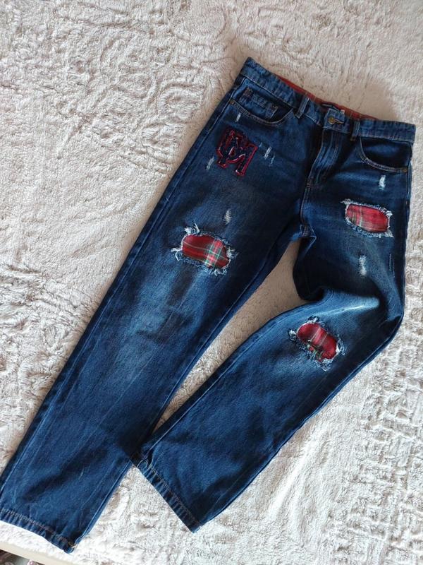 Джинси на дівчинку. Розмір 11/12 років. (146-152 см).Стан ідеальний (пару разів одягала). Пояс на утяжці, можна регулювати. Жодних нюансів на джинсах немає. Всі потертості, дірочки - все рідне, фабричне. Джинс середньої щільності не тягнеться як стрейч.