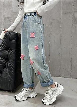 Стильные джинсы для девочек 🖤 Пояс на резинке 🖤 Сзади есть карманы 🖤 Красивая объемная нашивка 💣 Хорошее качество 🚛Доставка 1-2 дня 120(3 шт) 130(3 шт) 140(3 шт) 150(3 шт) 160(3 шт) 120-Длина 67 см шаг 43 см пояс 22*2 см 130-Длина 72 см шаг 48 см пояс 23*2 см 140-Длина 76 см шаг 50 см пояс 24*2 см 150-Длина 80 см шаг 55 см пояс 24*2 см 160-Длина 86 см шаг 59 см пояс 25*2 см Замеры сделаны одной ростовки Допустима похибка +-1-2 см