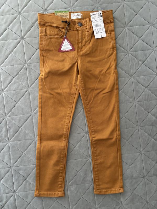 Фирменные джинсы для девочки в красивом горчичном цвете, в поясе есть утяжка, застежка-кнопочка.
