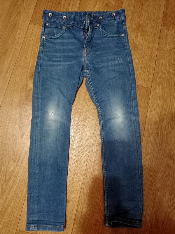 Стрейчеві джинси з потертостями на колінах, з еластичною резинкою в поясі