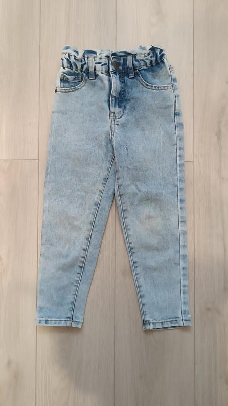 Джинси на дівчинку.Розмір 110.Пояс на резинці.В гарно у стані ,лише на одному коліні зелена полоска від фломастера(можна вивести).Довжина 61см.Пояс 25, тягнеться 30см.Кофта на фото теж продається ,розмір вказаний 6років(маломірить)