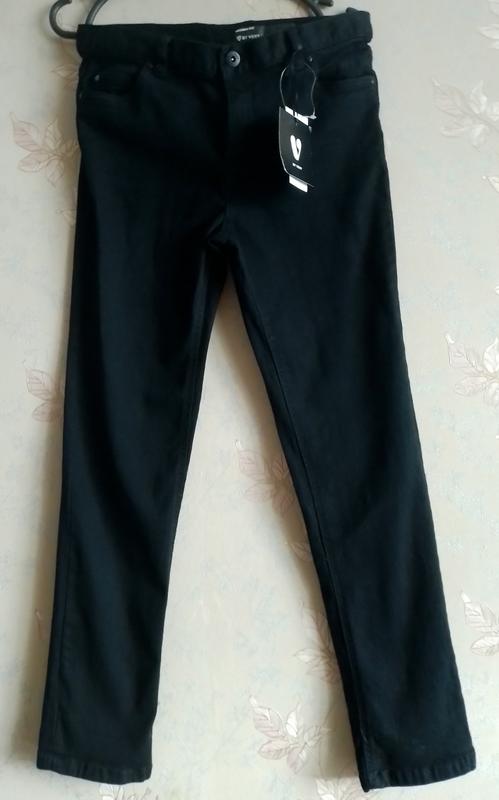 Нові джинси насиченого чорного кольору 99% бавовна, 1 еластан. Довжина по боковому шву 93 см, посадка 24 см, ПОП 36 СМ, ПОБ 42 СМ, штанина ширина 15 см.Більше інформації по запиту.