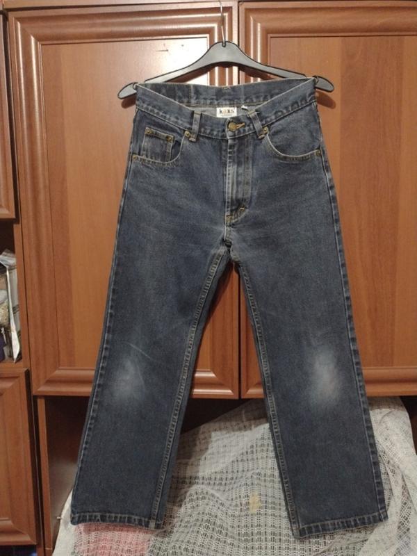 Детские джинсы с вытертыми коленями.
