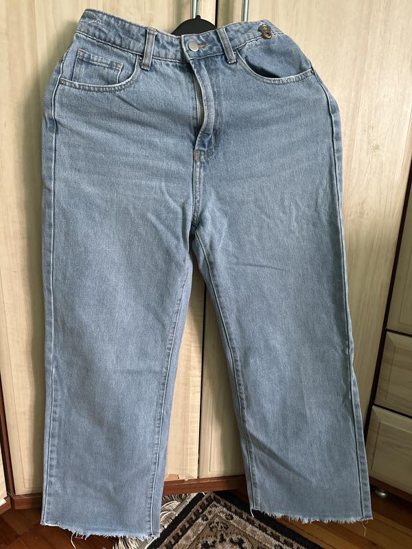 Джинси голубого кольору, широкі, підійдуть на ріст 150-156см. Довжина штанів 96см, довжина кроку 68см, пів обхват талії 36см, пів обхват бедра 45см