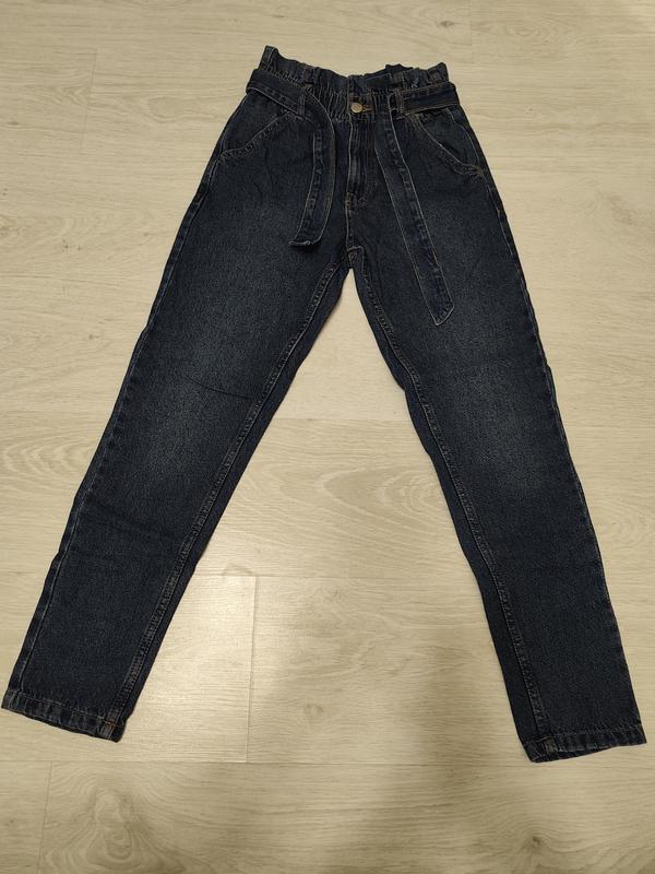 Це темно-сині джинси з високою посадкою та поясом