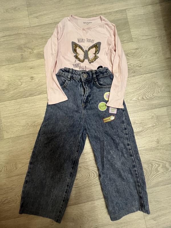Джинси та рожева кофтинка в ідеалі, біла трішки є плями на рукаві. Ціна за все.