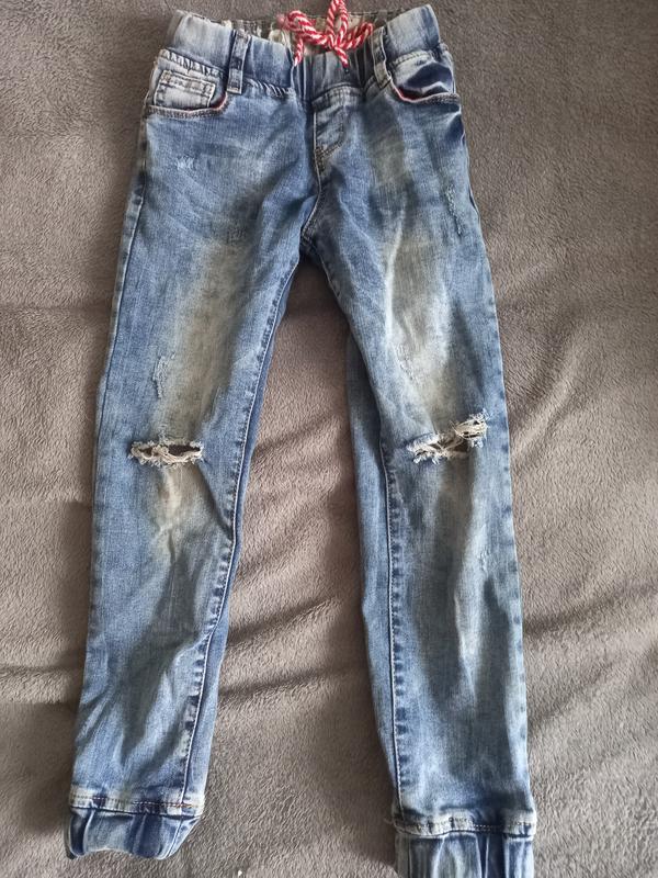 Джинси дитячі унісекс. Розмір 24. Довжина від пояса 73 см. Є один дефект маленька плямка, майже не помітна ( є на фото)