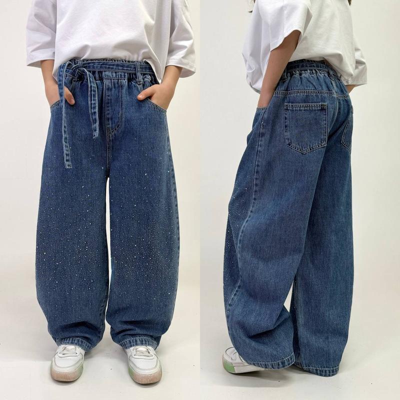 Джинси BAGGY прикрашені яскравим камінням виробник Китай тканина котон багато кишень В поясі під резинку та поясок СУПЕР ЯКІСТЬ! ціна 1280 грн зріст/розмір/довжина/крок/пот/поб похибка+-2см 140/28/89/58/27/51-1шт 146/29/92/60/28/52-1шт 152/30/95/63/28/52-1шт 158/31/98/66/29/53-1шт 164/32/102/68/30/54-1шт