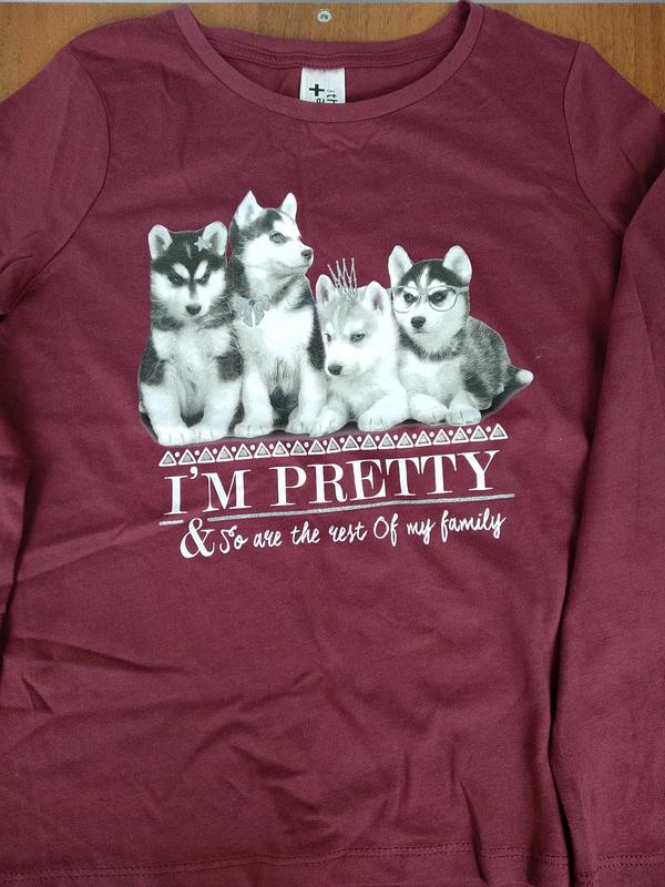Дитяча футболка з довгим рукавом реглан з принтом "хаскі" від c&a. Розмір по бірці на ріст 134/140 см. Сток. ЗАМІРИ: ПОГ 37 см, ПО по низу 40 см, рукав від плеча 49 см, довжина футболочки 48 см.