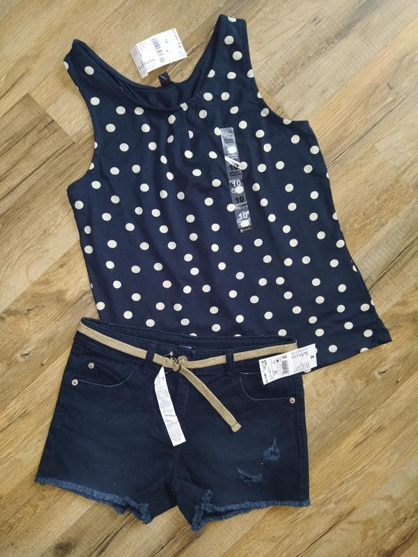 Майка в горошек сзади на резинке сделана в стиле борцовки шикарного качества!! на 10 лет (Длина 52см, пог 37см. На ощуп очень приятная и мягкая)