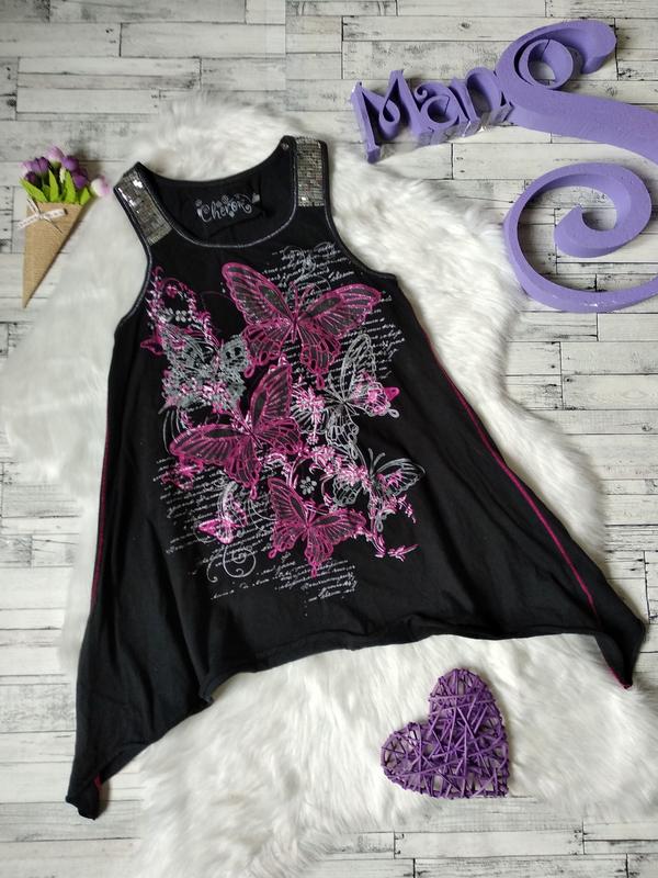 Футболка Cherokee на дівчинку з метеликами в хорошому стані Розмір 12-13 років,зріст 158 см Заміри: довжина 60 см плечі 25 см ПОГ 36 м ПІТ 42 см колір чорний,метелики склад 100% бавовна