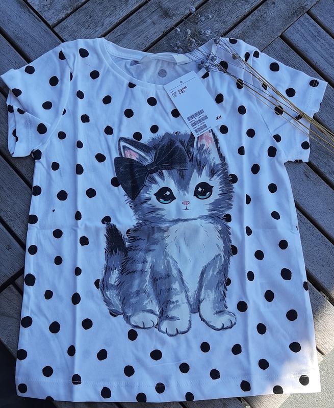 Наймиліша футболочка з кошеням від H&M: підійде кожній дівчинці! РОЗМІР: 6-8Y ПЛЕЧІ: 26 СМ ГРУДИ: 32 СМ ПРОЙМА: 16 СМ ДОВЖИНА ФУТБОЛКИ: 43 СМ ДОВЖИНА РУКАВА:11 СМ