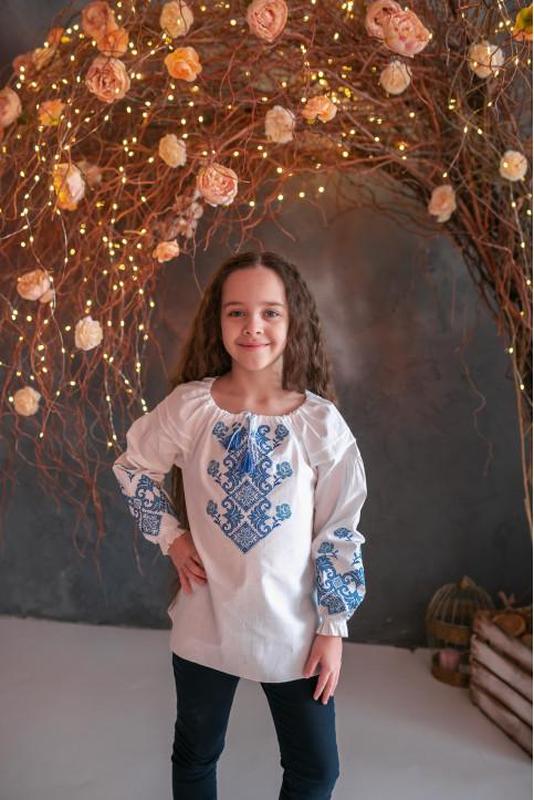 Детская и подростковая украинская вышиванка для девочки Рубашка украшена орнаментом. Качественная машинная вышивка крестиком. Рукав- реглан имеет манжет на резинке, которая обеспечивает удобную посадку на руке. Вырез горловины регулируется кистями. Вышитая рубашка выполнена из качественного материала и отличается классическим свободным кроем, по этому носить ее очень удобно. Ткань: бязь, 100% хлопок. Не просвечивается, держит форму. Рост: 116, 122, 128, 134, 140, 146, 152.