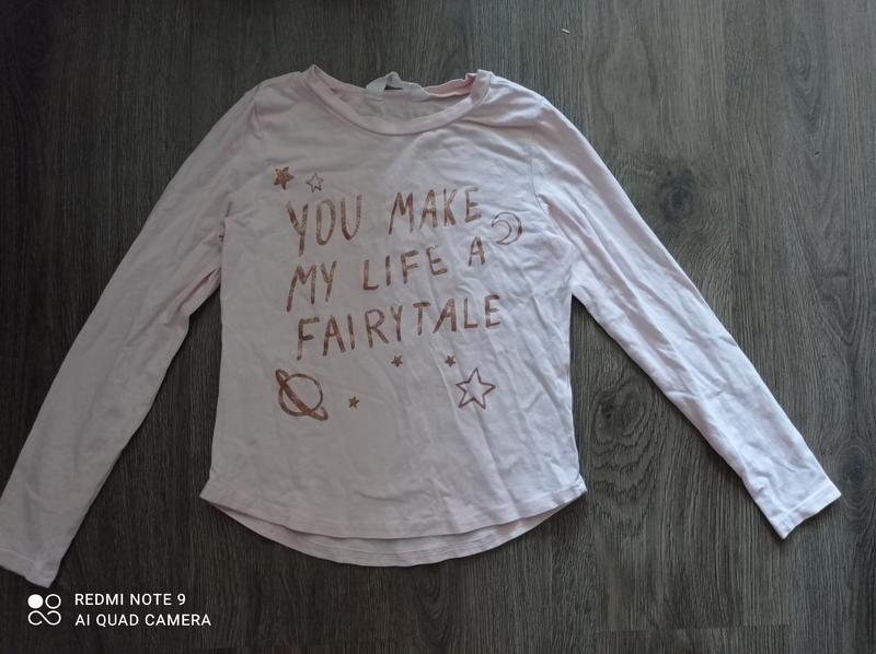 Реглан бавовняний для дівчаток в ідеальному стані з малюнком, написом срібного напилення,:куплений в Англії Довжина - 45см, Ширина в плечах - 28см, Ширина під пахвами - 34,5 см Рукав - 49см Носили акуратно і мало