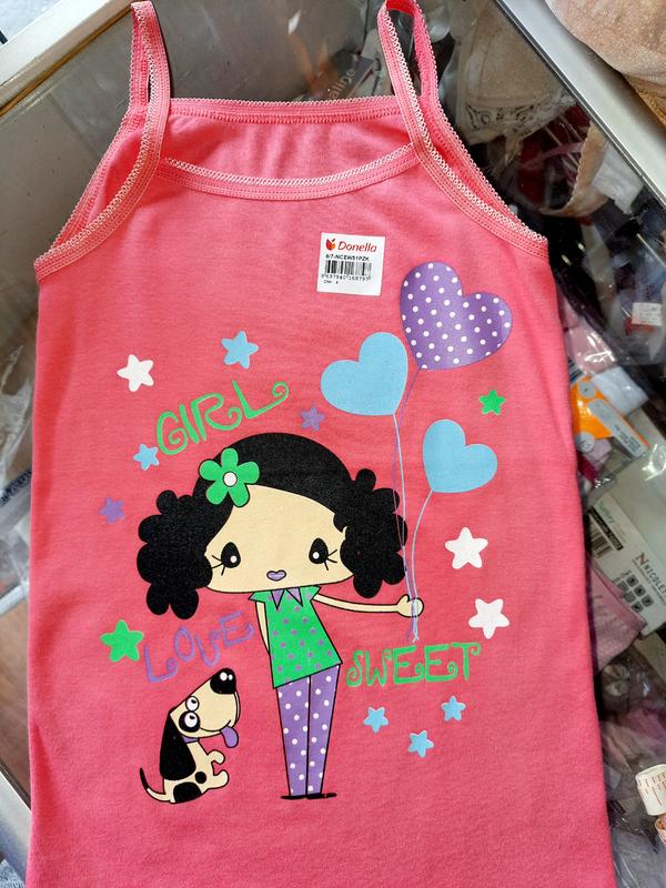 Трикотажна кофтинка коралового кольору на вік-8/9 років на вузькій бретеле.