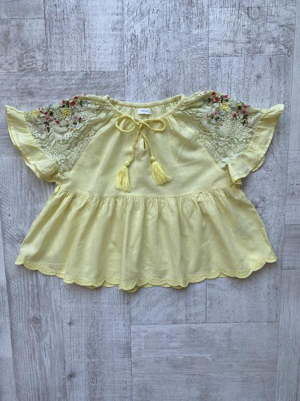 Дуже красива блуза з вишивкою англійської бренду Next. 100% бавовна. Розмір 4 роки, ріст 104см. Можна носити і до 5 років. Довжина 40см, ширина 37см. Блуза дуже красиво виглядає на дитині. Стан відмінний.