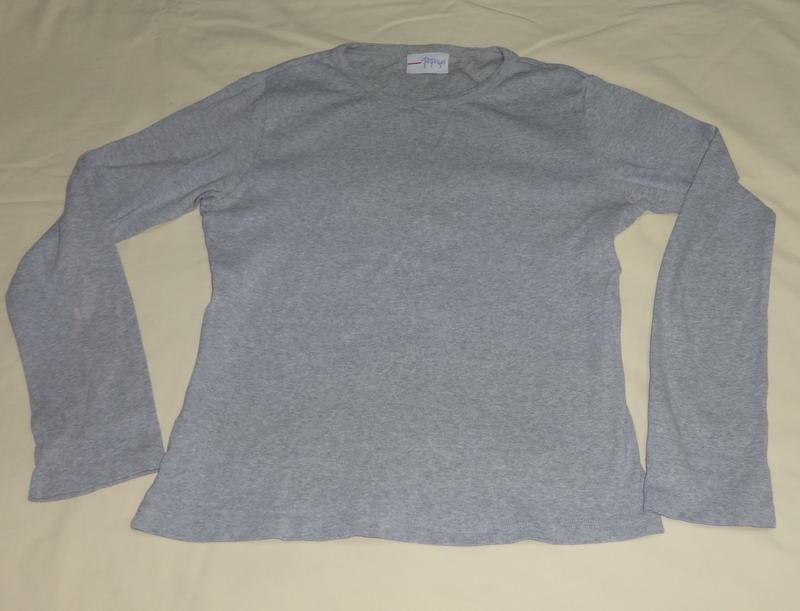 футболка з довгим рукавом, 12 розмір (наш 44) У чудовому стані, без дефектів. Склад тканини: 100% бавовна. Гіпоалергенна тканина. Унісекс. Не була у використанні. НОГ 46 см, НОТ 42 см; СПЕД 47 см, довжина виробу 54 см; довжина рукава 56 см. Пересилка по Україні Укріплої, Нової Пощой, міст згідно з тарифами перевізника. Предоплата на карту Приватбанка. Товар не підлягає поверненню.