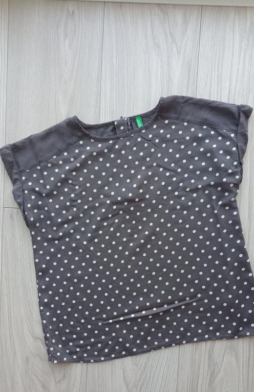 Колір темно сірий. Стан хороший, плям немає, є нюанс на плечах, трохи втрачений колір, на фото не передається. Тканина натуральна, типу сатин, м'яка, приємна на дотик. Заміри: довжина по спинці 48 см ширина під руками напівобхват 44 см