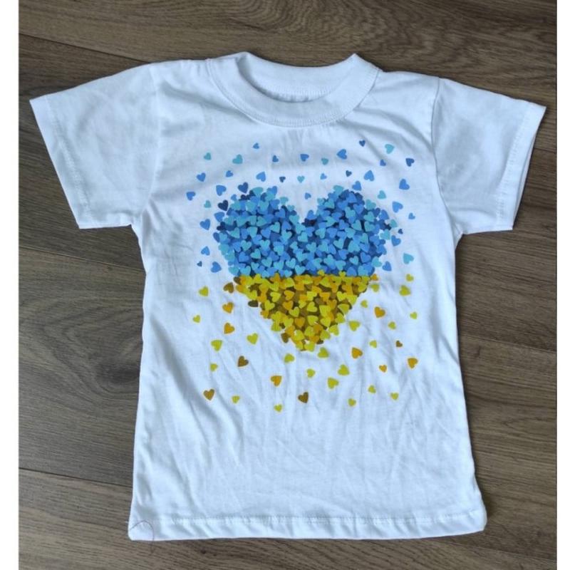 Футболка для дітей та підлітків Тканина кулір - піньє, тонка бавовняна тканина високої якості, чудово веде себе при пранні та носці) На дотик дуже легка та приємна, чудово дихає, вбирає вологу та майже не відчутна. Малюнок - якісний шовкотрафаретний друк в формі серця що складається з багатьох дрібних сердечок в патріотичному кольорі нашої країни Розміри: 34(116/125) - 235 грн 36(125/134) - 245 грн 38(134/142) - 265 грн 40(142/150) - 280 грн 42(152/158) - 285 грн 44(158++) - 305 грн