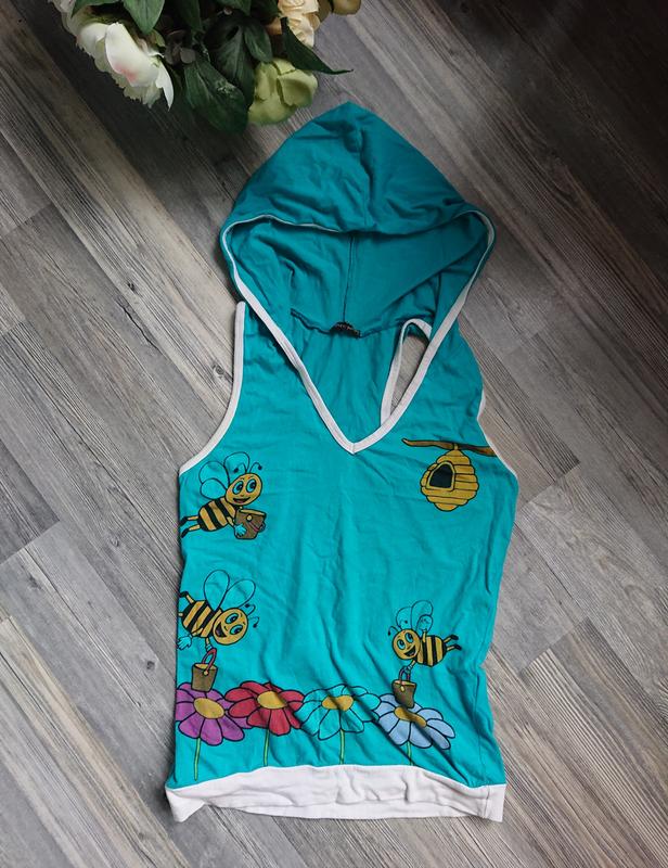 Красивая футболка с капюшоном и рисунком пчёл ткань хлопок На возраст 7-10 лет Замеры Длина 53 Пог 38 тянется 44