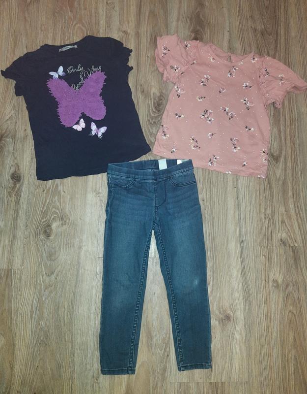 футболки довжина 38 см. Джинси в подарунок пояс 22 довжина 51.