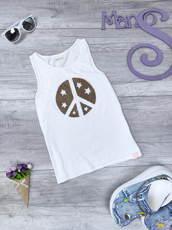 Майка біла для дівчинки Brotes з малюнком Стан: б/в, у відмінному стані Виробник: Brotes Розмір: 152 Колір: білий Принт: малюнок Склад: 100% бавовна Виміри: Напівобхват грудей: 36 см Довжина: 52 см
